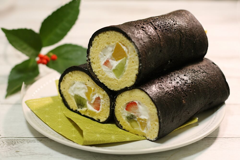 ごはんではなく、恵方巻きをイメージしたロールケーキの「恵方ロール」が最近の流行になりつつあります。スポンジに薄くホイップやカスタードを塗り、いちごやキウイ、オレンジなど薄切りの果物を一列にして厚みを均一にします。果物は中央に寄せて端は薄めにすると巻きやすく、かぶりやすい太さになります。仕上げはきなこ・すりごま・ココアで風味を整え、甘味だけでまとめると統一感が出ます。