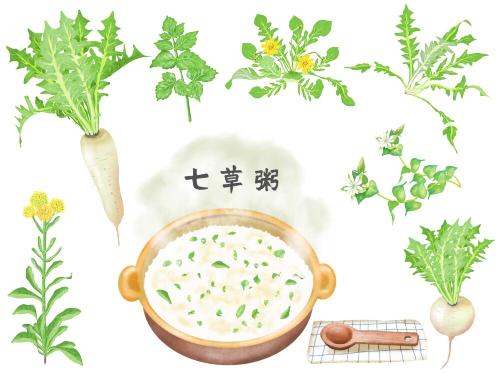 6日夜に七草を刻み、7日の朝に仕上げて食べるとよい