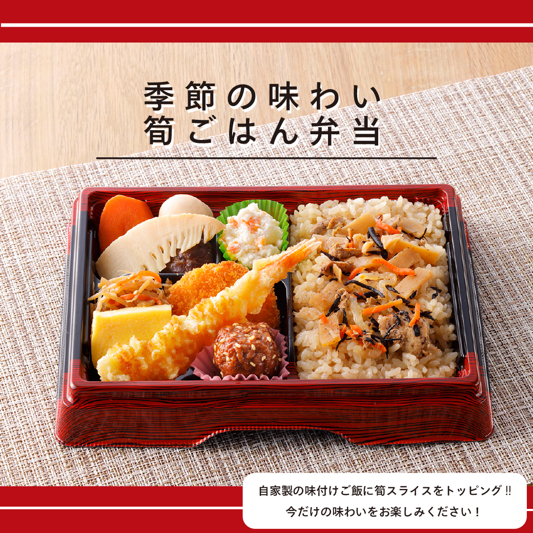 【季節の味わい筍ごはん弁当】が登場🍱 2026年3月5日 新着情報季節のおすすめ 【季節の味わい筍ごはん弁当】が登場🍱 自家製の味付けご飯に筍スライスをトッピング🌱 今だけの味わいをお楽しみください! 📌本体価格:730円 (税込 788円) 📅販売期間:3月4日~8月24日(予定) ※弁当の内容は変更する場合があります。 ※取扱商品の種類や販売期間は店舗によって異なります。店舗でのお買い求めをご検討の際には、お近くの店舗に直接お問い合わせください。