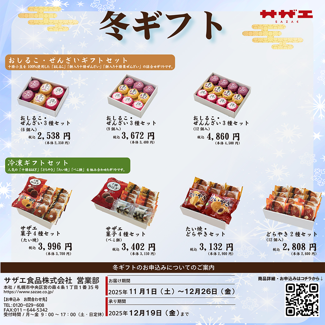 ご自宅用や贈り物にもぴったりなサザエ自慢のギフト商品をご用意しました❄️