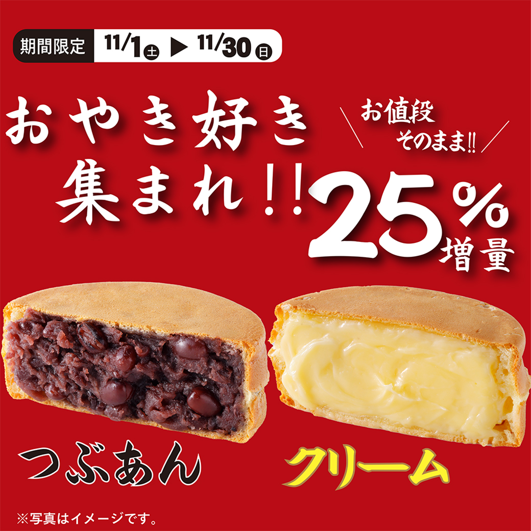お値段そのまま、人気の北海道おやき「つぶあん」と「クリーム」がなんと25%増量!😋