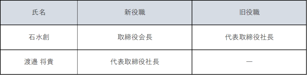 1. 代表取締役の異動(2026年4月24日付)