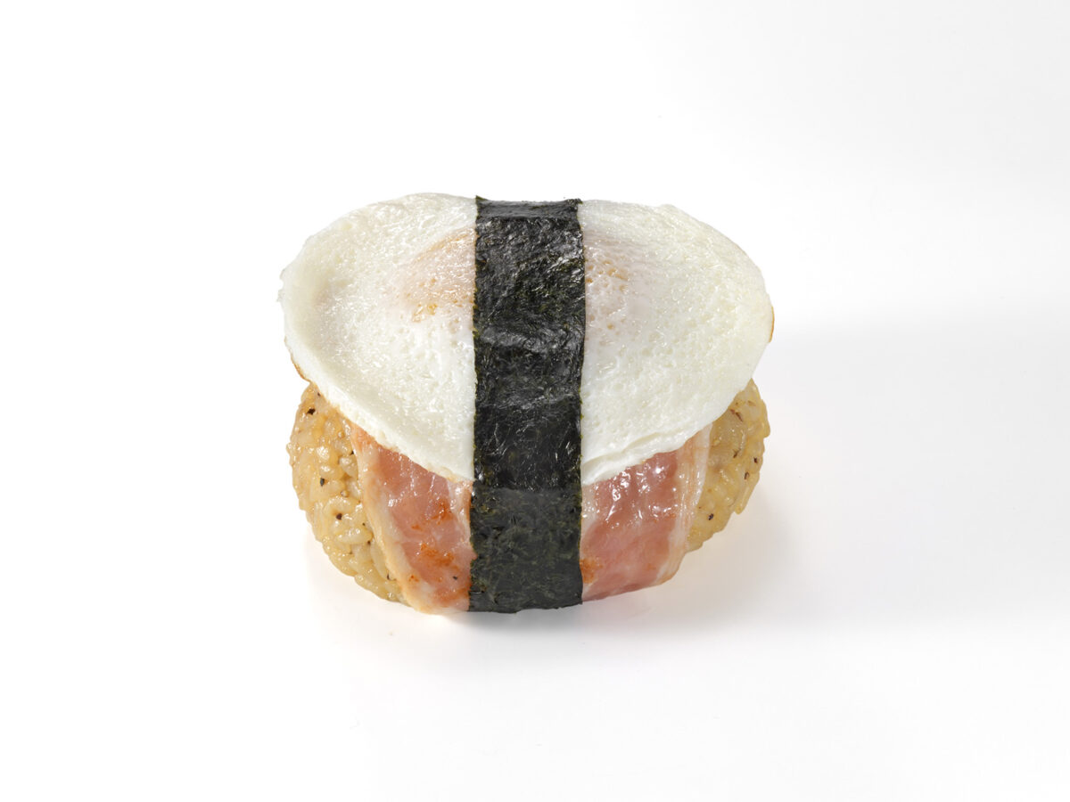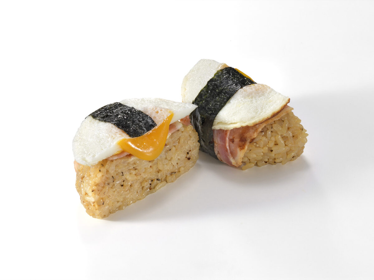- 原材料名 ご飯(うるち米(北海道産)、調味酢、食用油脂)、目玉焼き風オムレツ、ベーコン、調味つゆ、マヨネーズ、ブラックペッパー、海苔(国産)/加工澱粉、リン酸塩(Na)、増粘剤(増粘多糖類、アルギン酸Na)、調味料(アミノ酸等)、酸化防止剤(V.C)、発色剤(亜硝酸Na)、くん液、pH調整剤、乳化剤、酒精、甘味料(甘草)、香辛料、着色料(コチニール、アナトー)、(一部に小麦・卵・乳成分・大豆・豚肉・さば・ゼラチンを含む)
