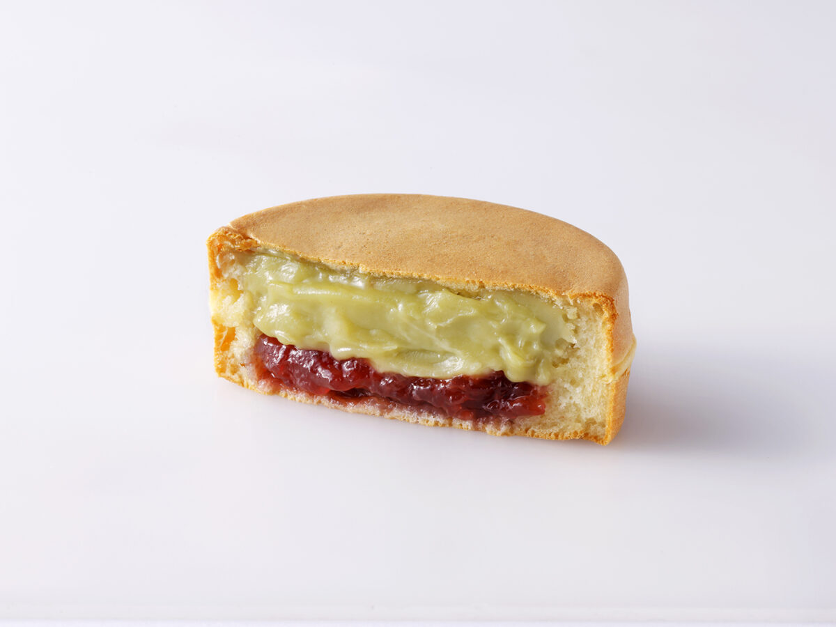 - フラワーペースト(植物油脂、水飴、砂糖、麦芽糖、ピスタチオペースト、その他)(国内製造)、製パン製菓用粉、ラズベリージャム、ピスタチオ/ソルビット、加工澱粉、膨張剤、グリシン、ゲル化剤(増粘多糖類)、酸味料、香料、着色料(紅麹、紅花黄、野菜色素、V.B2、クチナシ)、保存料(ソルビン酸(K))、増粘多糖類、乳化剤、pH調整剤、リン酸Ca、酸化珪素、(一部に小麦・卵・乳成分・りんごを含む)