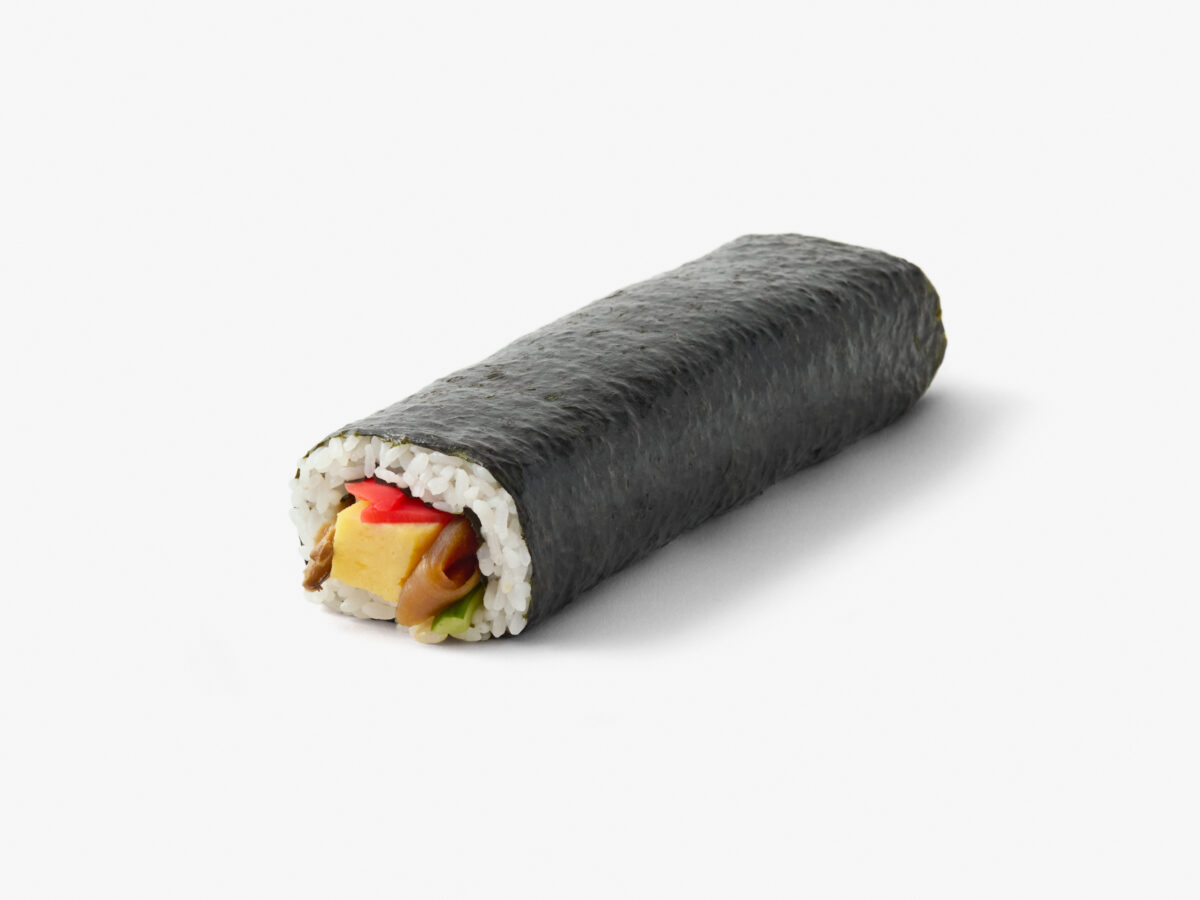 - 酢飯(うるち米(北海道産)、調味酢、食用油脂)、玉子焼、味付干瓢、味付椎茸、胡瓜、紅生姜、海苔(国産)/グリシン、pH調整剤、酸味料、着色料(カラメル、赤102)、調味料(アミノ酸等)、保存料(ソルビン酸K)、トレハロース、乳化剤、(一部に小麦・卵・大豆を含む)