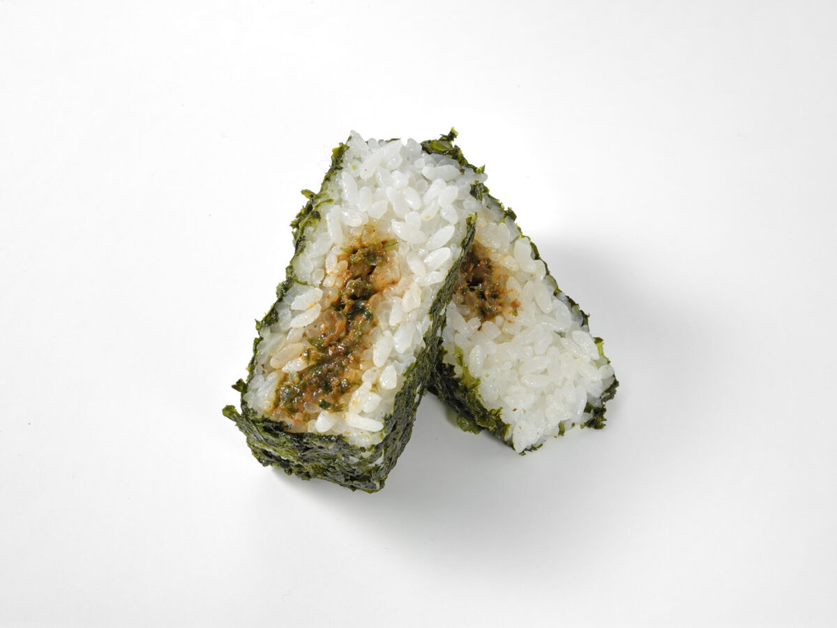 - ご飯(うるち米(北海道産)、調味酢、食用油脂)、味付おかか、マヨネーズ、海苔(韓国産)、コチュジャンソース、食塩、豆板醤、青粉/ソルビット、糊料(加工澱粉、増粘多糖類)、調味料(アミノ酸等)、酒精、酢酸Na、グリシン、酸味料、甘味料(スクラロース)、香辛料、乳化剤、(一部に小麦・卵・乳成分・大豆・ごま・鶏肉・さばを含む)