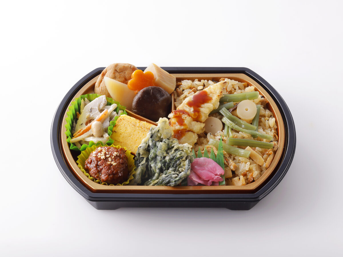 - 味付ご飯(うるち米(北海道産)、味付揚げ、もち米(北海道産)、調味酢、食用油脂)、煮物(こんにゃく、筍、がんも、砂糖、醤油、乾しいたけ、人参、その他)、筍ご飯の具(筍、鶏肉、油あげ、人参、つきこんにゃく、醤油、その他)、ミートボール、玉子焼、サラダ、天ぷら粉、味付山菜、味付菜の花、食用油脂、味付け筍、天丼たれ、大根漬物、白ごま/加工澱粉、グリシン、調味料(アミノ酸等)、膨張剤、増粘剤(加工澱粉、キサンタン)、ソルビット、酢酸(Na)、着色料(カラメル、銅葉緑素、野菜色素、カロチノイド、V.B2)、酸味料、乳化剤、pH調整剤、酸化防止剤(V.C)、豆腐用凝固剤、保存料(ソルビン酸K、安息香酸Na)、V.C、消石灰、乳酸Ca、香料、酒精、甘味料(ソルビット)、漂白剤(亜硫酸塩)、香辛料、シリコーン、(一部に小麦・卵・乳成分・えび・大豆・ごま・鶏肉・豚肉・さばを含む)